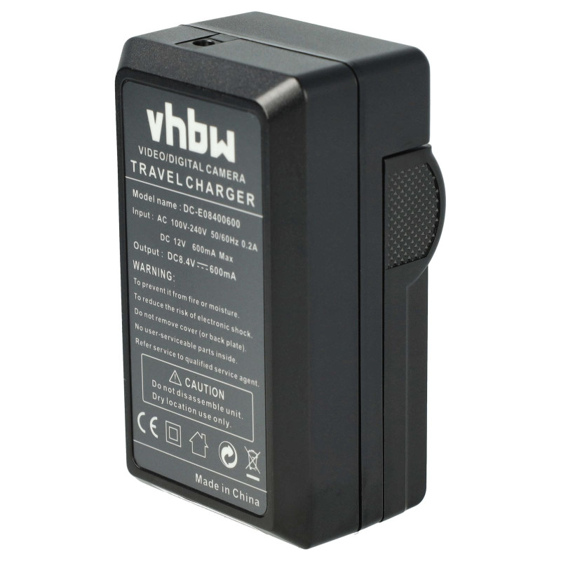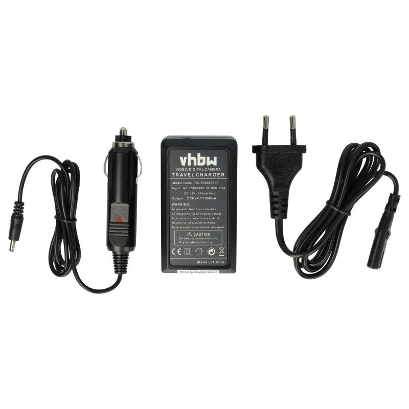 Kompaktní stolní nabíječka pro nabíjení baterií pro fotoaparáty/kamery, kterou lze zapojit do běžné elektrické zásuvky nebo do zásuvky automobilu. LED indikátor stavu ukazuje stav nabití baterie. Nabíječka se automaticky vypne, když je baterie plná.