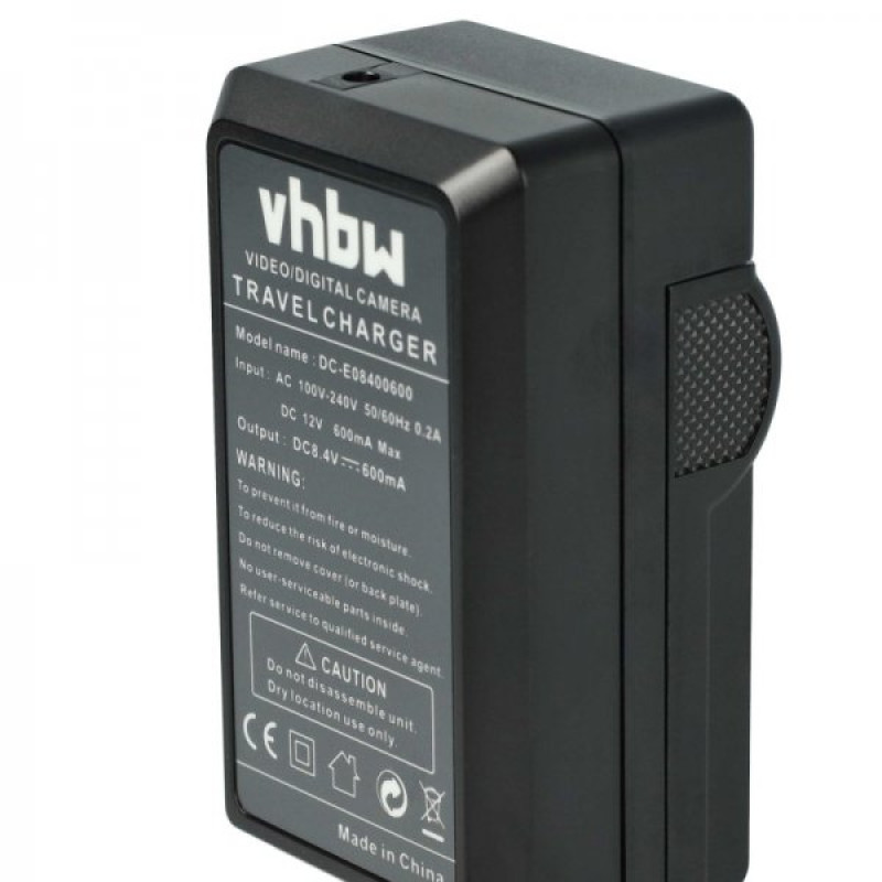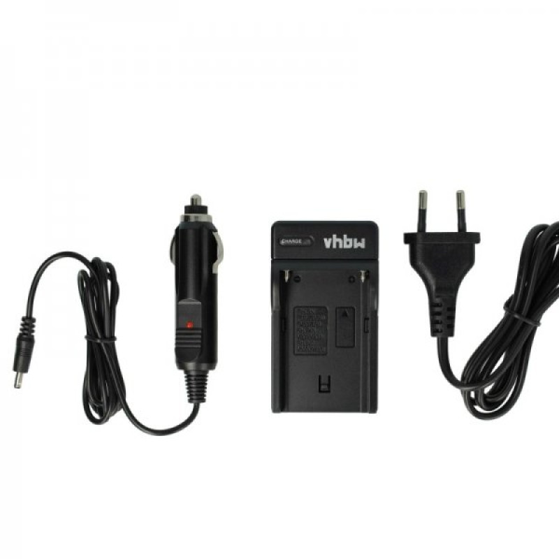 Kompaktní stolní nabíječka pro nabíjení baterií pro fotoaparáty/kamery, kterou lze zapojit do běžné elektrické zásuvky nebo do zásuvky automobilu. LED indikátor stavu ukazuje stav nabití baterie. Nabíječka se automaticky vypne, když je baterie plná.