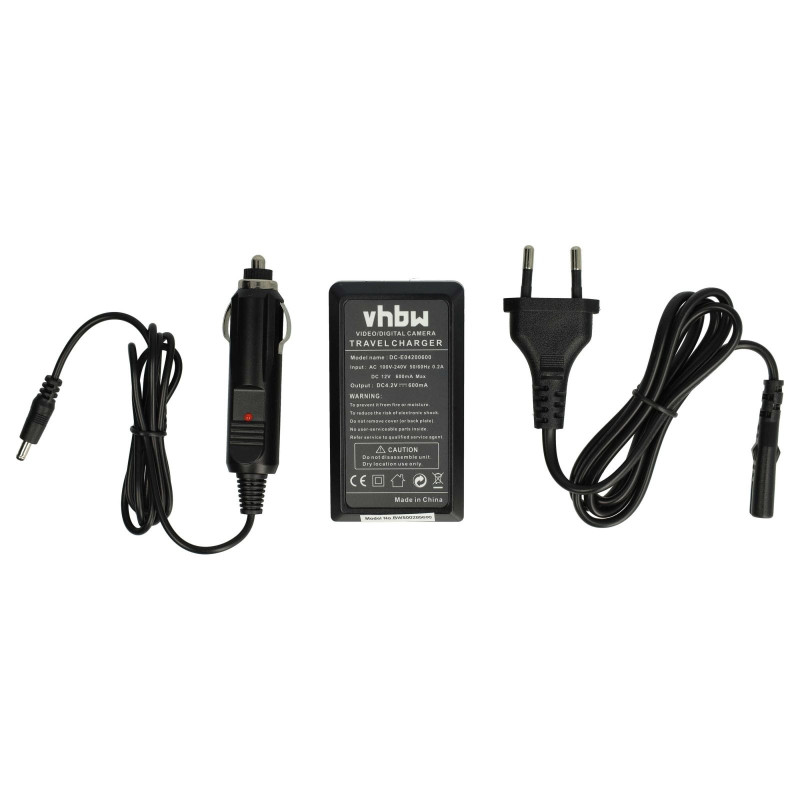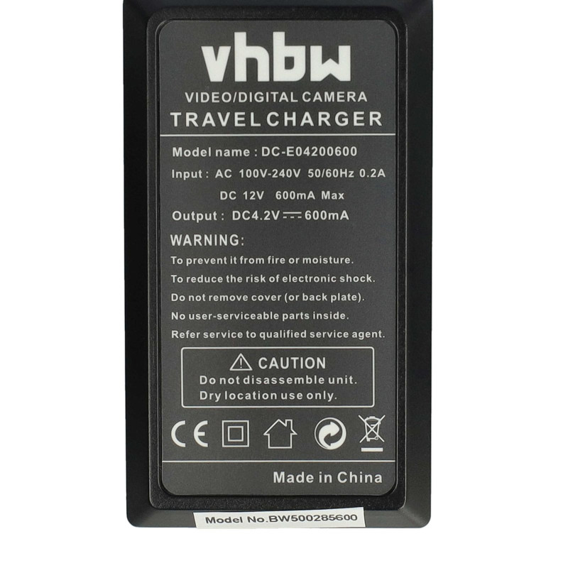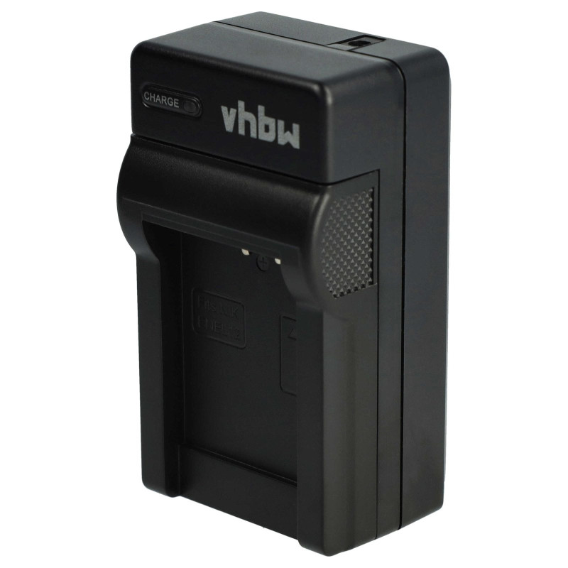 Kompaktní stolní nabíječka pro nabíjení baterií pro fotoaparáty/kamery, kterou lze zapojit do běžné elektrické zásuvky nebo do zásuvky automobilu. LED indikátor stavu ukazuje stav nabití baterie. Nabíječka se automaticky vypne, když je baterie plná.
