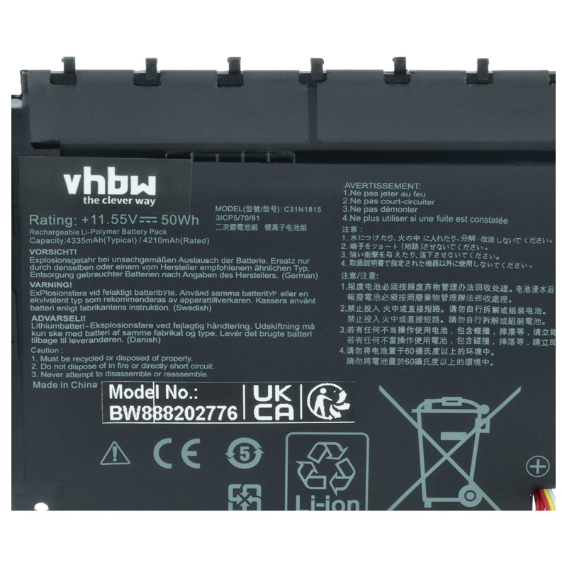 Vuoi ricevere il prodotto in Italia? Batteria per Asus Zenbook BX333FN / RX333FN / UX333FN, C31N1815, 4250 mAh | MediaOutlet.it