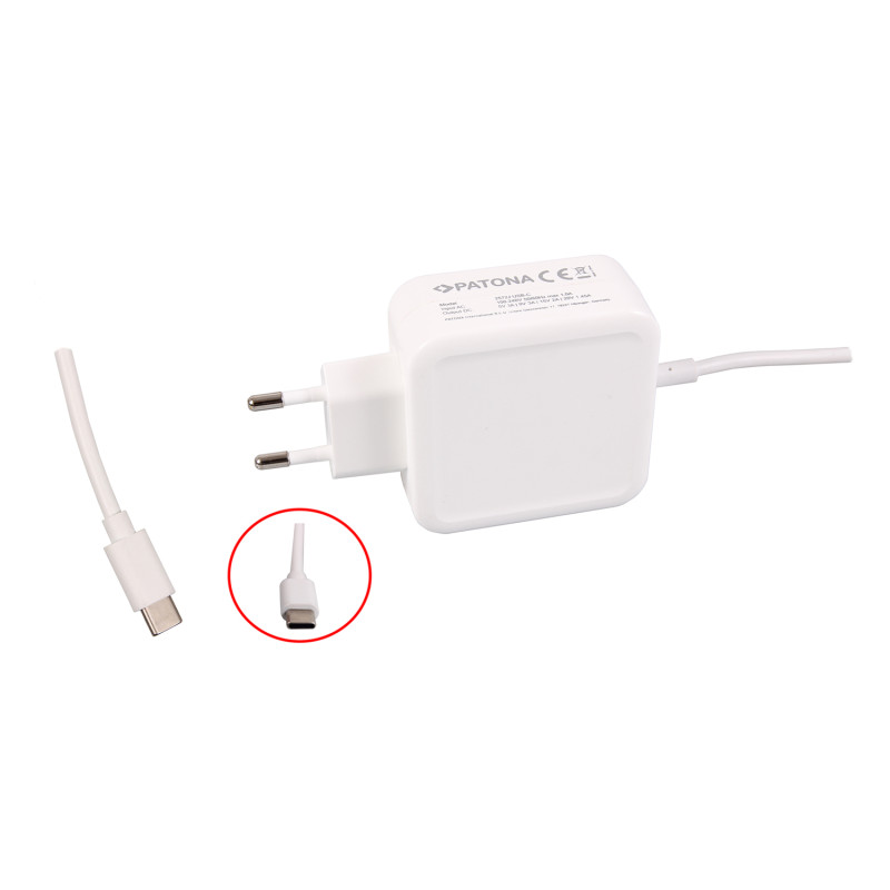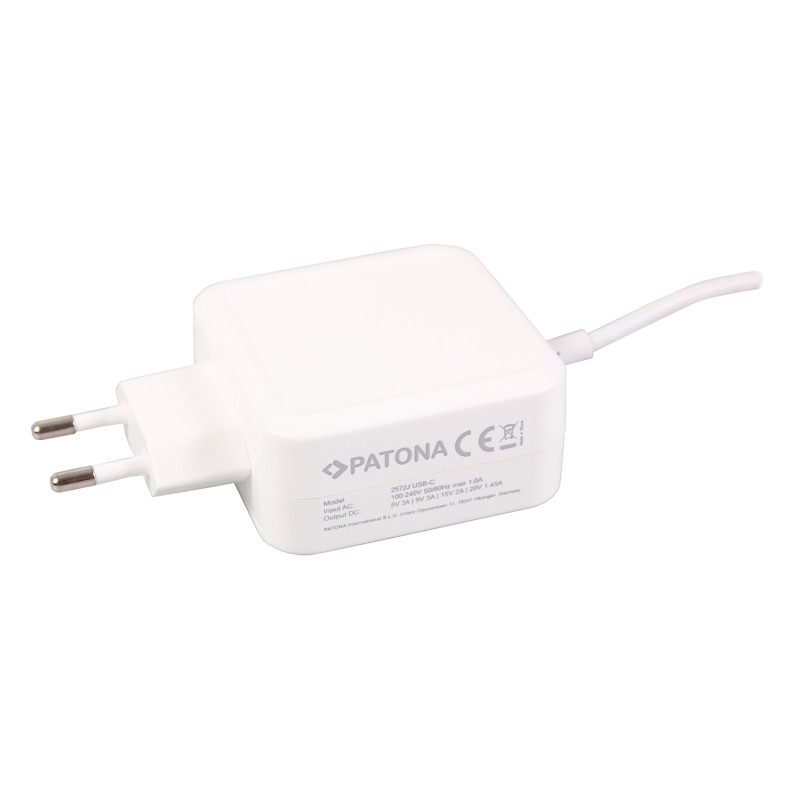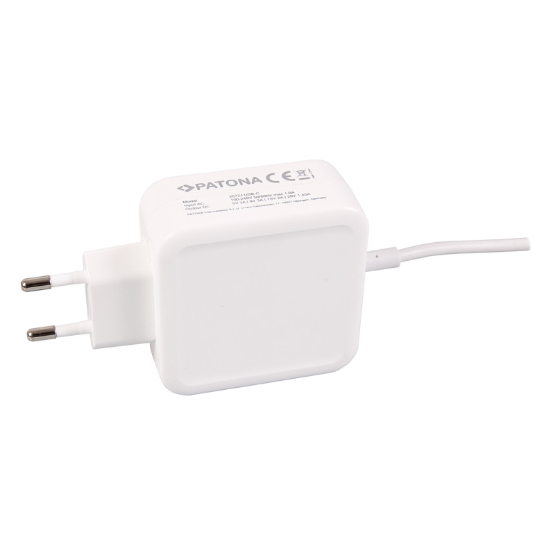 Náhradní napájecí zdroj značky Patona pro notebooky Apple MacBook Pro 12" / 13" / 15" se portem USB-C nebo Thunderbolt. Je vhodný i pro všechna ostatní zařízení, která jsou napájena přes port USB-C standardním napětím 5V. Zdroj má certifikáty CE a RoHS. Kabel součástí dodávky.