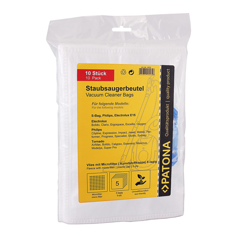 Sada 10 náhradních mikrofiltračních sáčků pro vysavače AEG, Electrolux, Philips a další, která vám ušetří drahocenný čas a peníze. Taška je vyrobena z pětivrstvého materiálu z mikrovlákna. Mikrofiltr poskytuje účinnou předfiltraci pro rovnoměrné rozložení prachu a sáčku, takže proudění vzduchu je konstantní až do úplného naplnění sáčku.